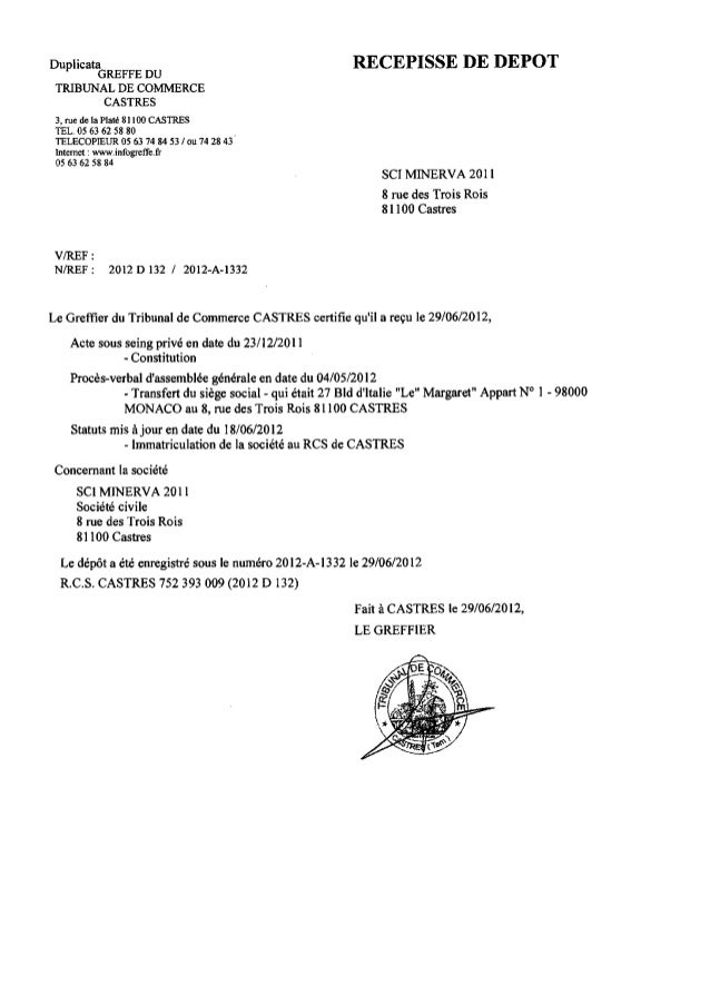 Toutes les infos utiles sur le greffe de votre tribunal de commerce à castres (81100). En effet, le greffe du tribunal de commerce conserve chaque document concernant votre entreprise. Et ' dorme societe par actions simplifiee a associe unique? ceci est la forme juridque.