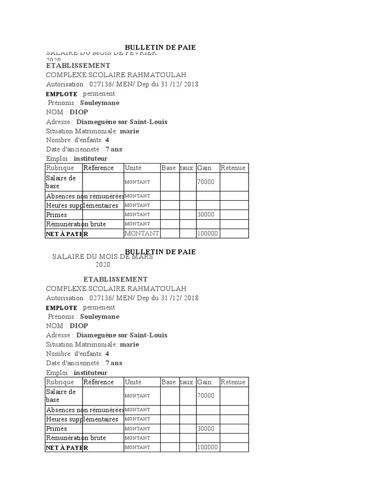 untuk "Date D'anciennet? Sur Bulletin De Paie"